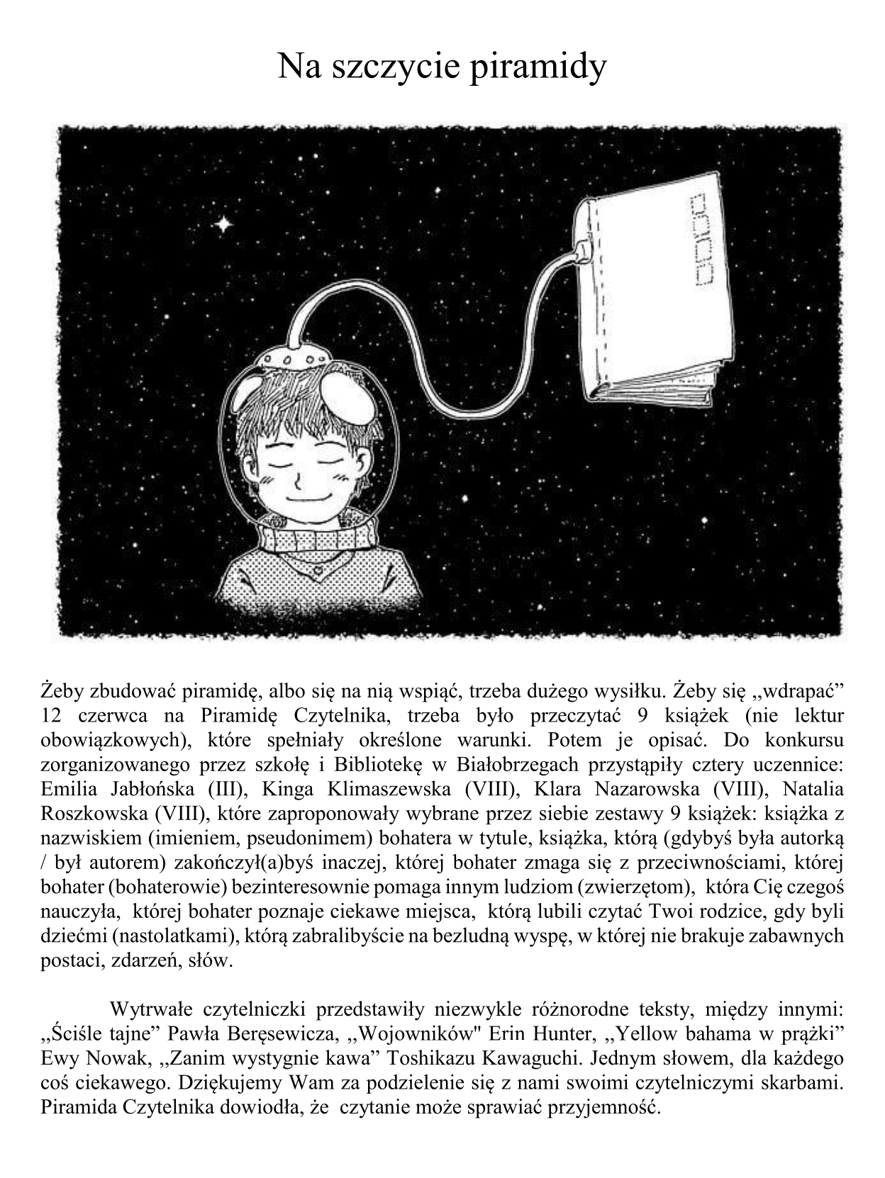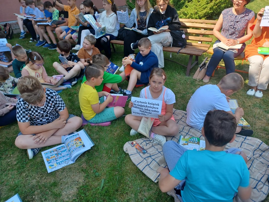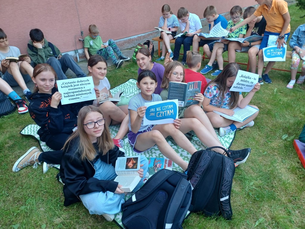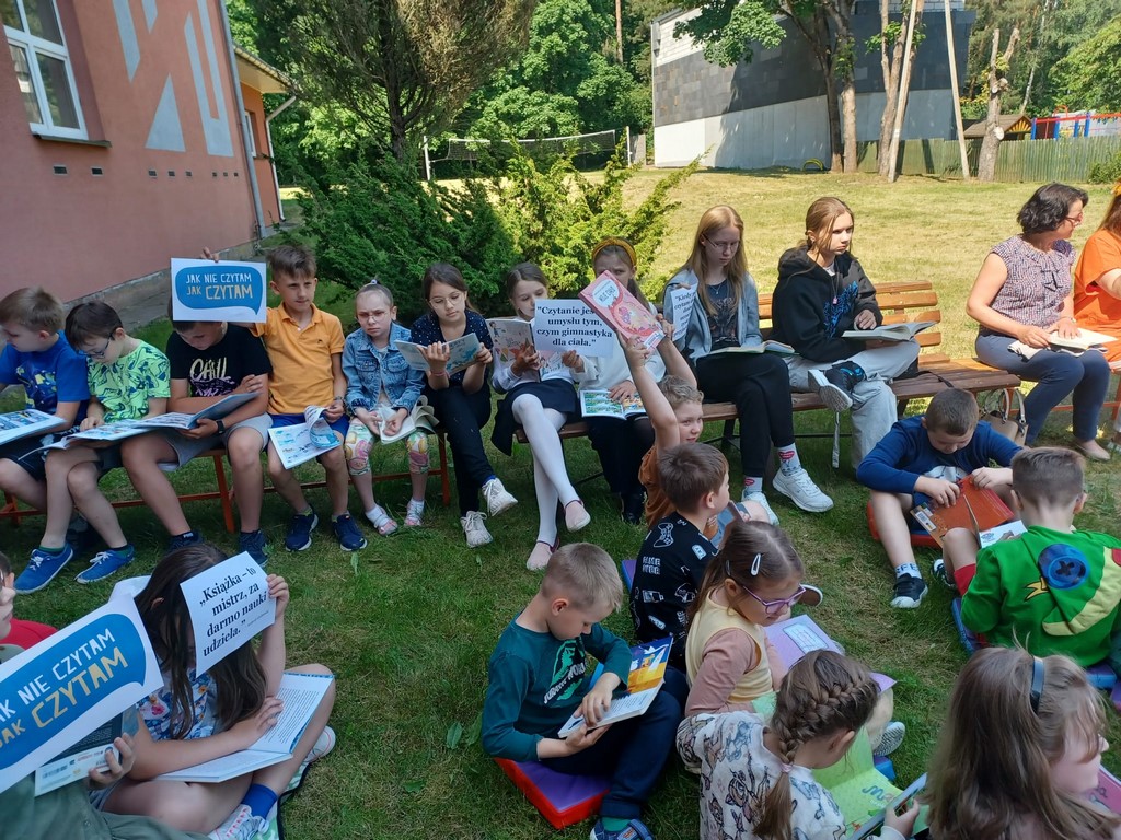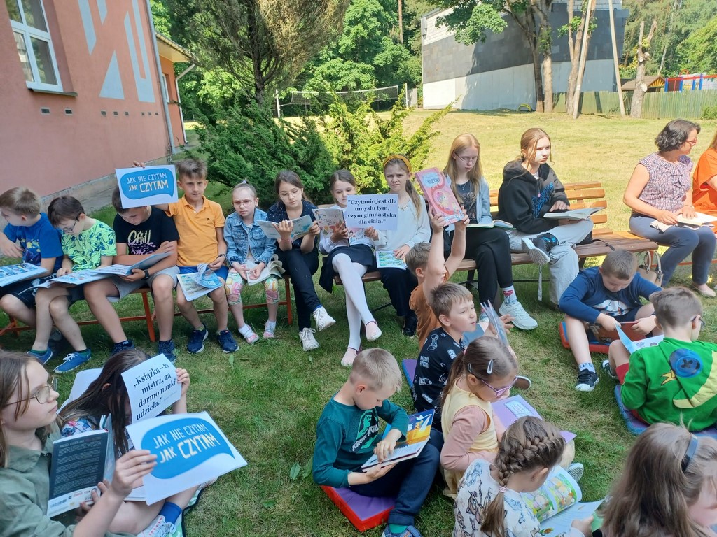 W piątek 7 czerwca biblioteka wraz z uczniami i nauczycielami ze Szkoły Podstawowej w Białobrzegach po raz piąty włączyła się do ogólnopolskiej akcji masowego czytania „Jak nie czytam jak czytam” związaną z ustanowieniem rekordu czytania w jednym momencie.