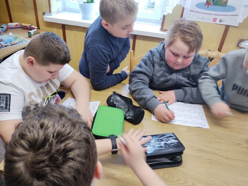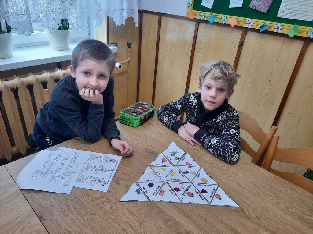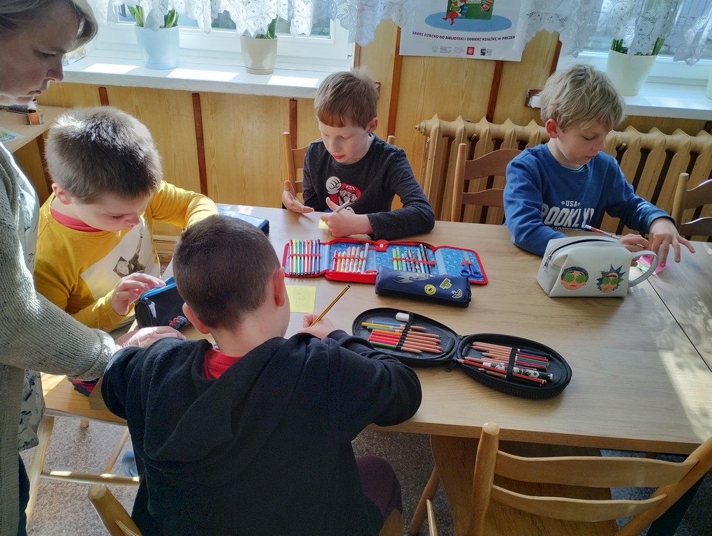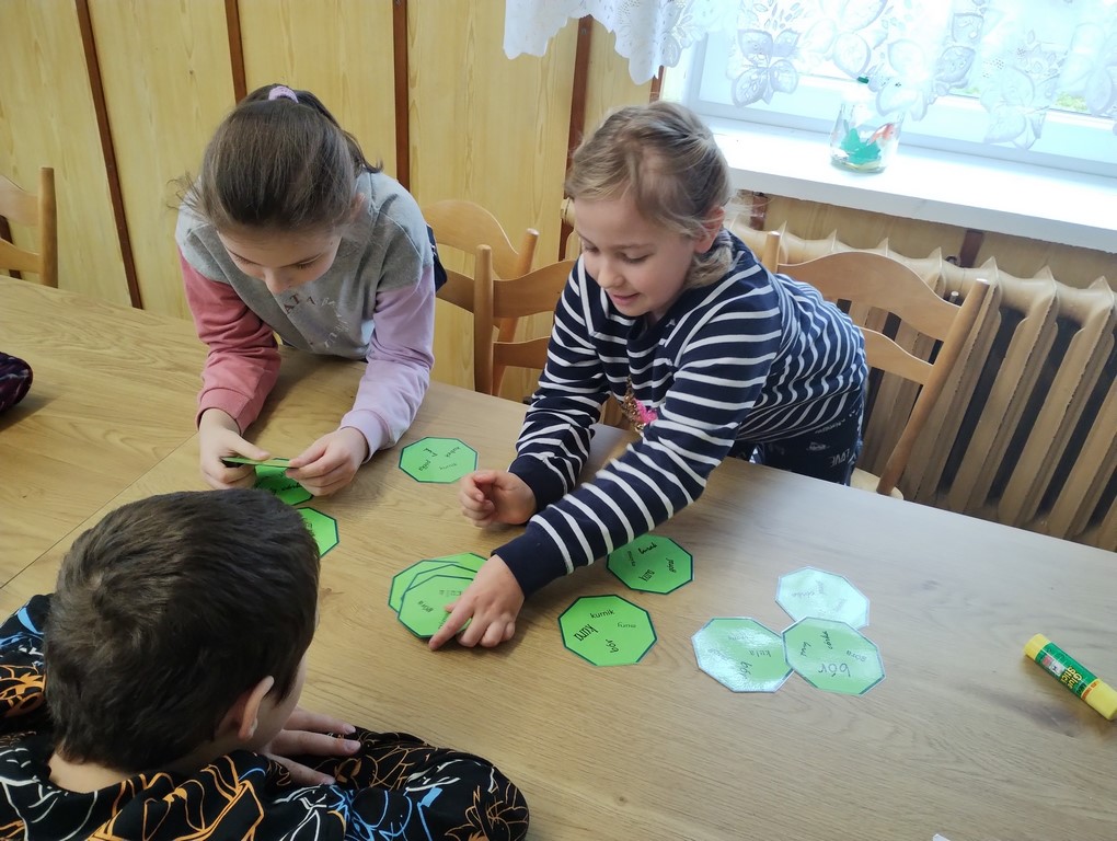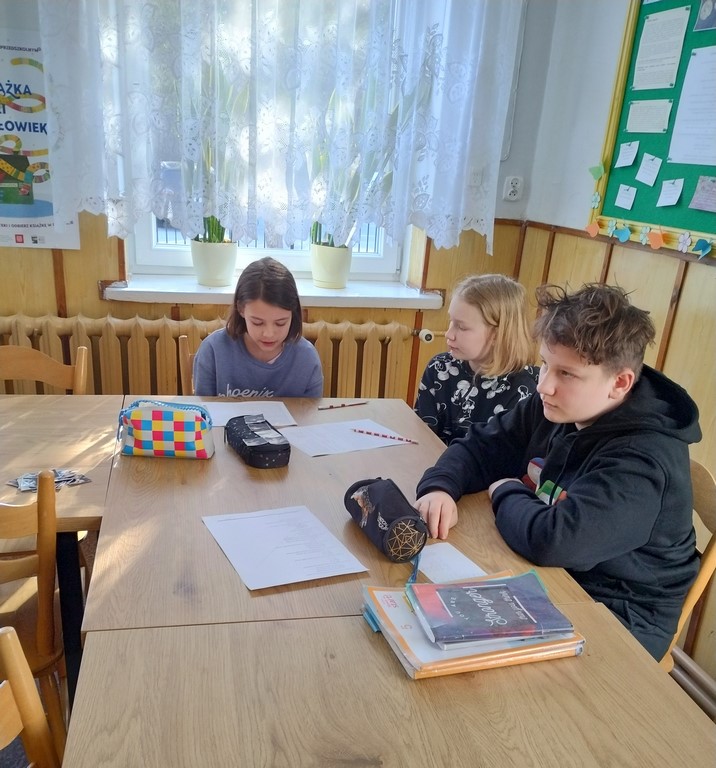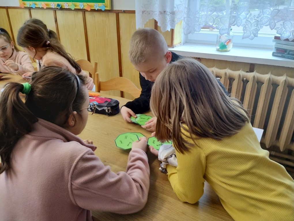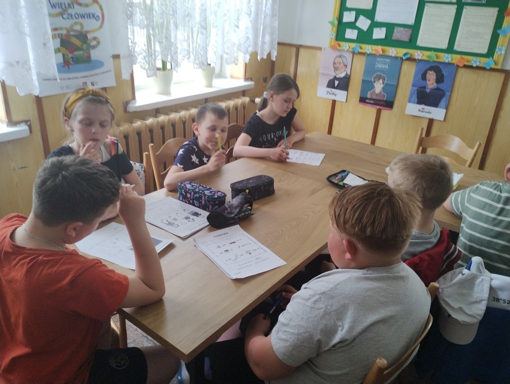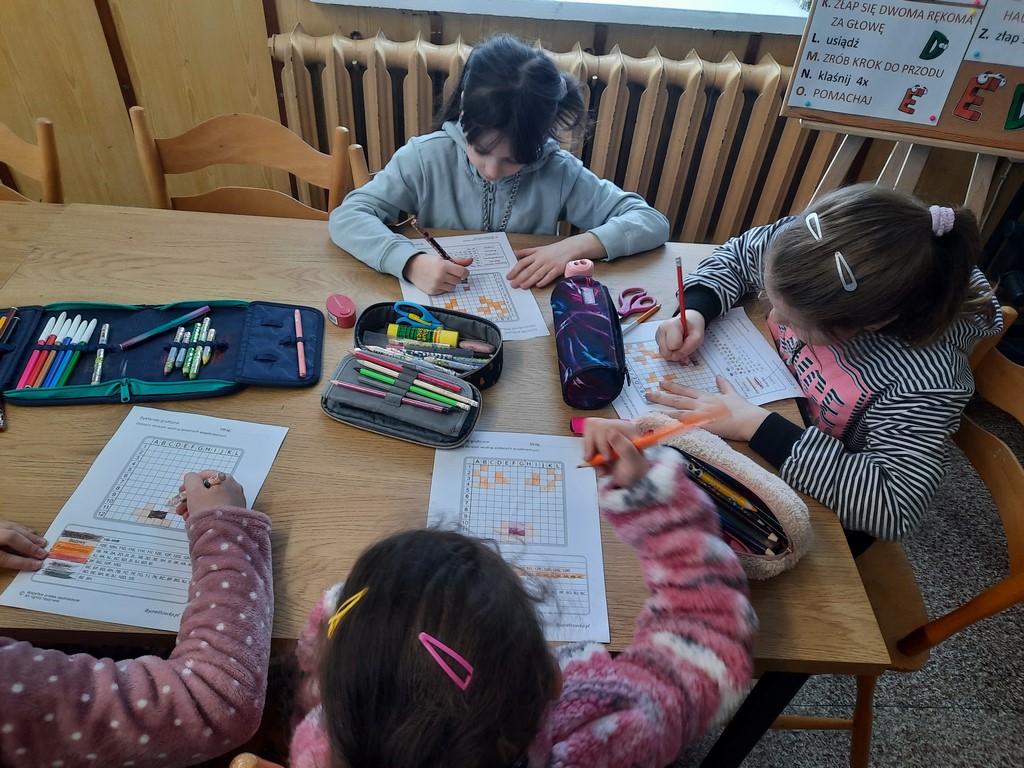 W ramach obchodów Międzynarodowego Dnia Języka Ojczystego biblioteka, jak co roku przygotowała dla uczniów klas I-III gry i zabawy językowe ( takie jak np. duble ortograficzne, rozkodywanie wyrazów, łączenie nazw z odpowiednimi częściami mowy, aktywny alfabet – tworzenie haseł dzięki wykonywaniu określonych czynności, kodowanie – dyktando graficzne, krzesła ortograficzne – zabawy w ortografie i łamńce językowe ). Natomiast piątoklasiści spróbowali swoich sił w zabawach językowych ze słowem Fajny. Uczniowie mieli okazję przekonać się, jak bardzo pojemne jest słowo Fajny. Na koniec każdy uczeń otrzymał tekst, w którym słowo Fajny musiał zamienić na stosowny wyraz bliskoznaczny.