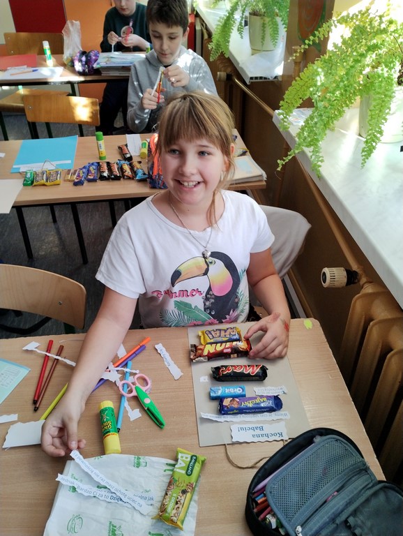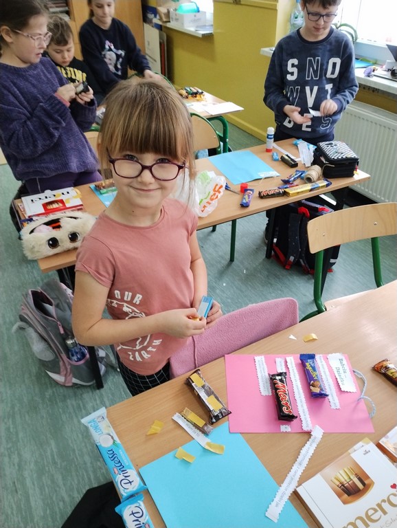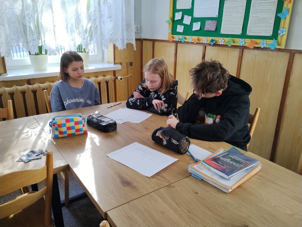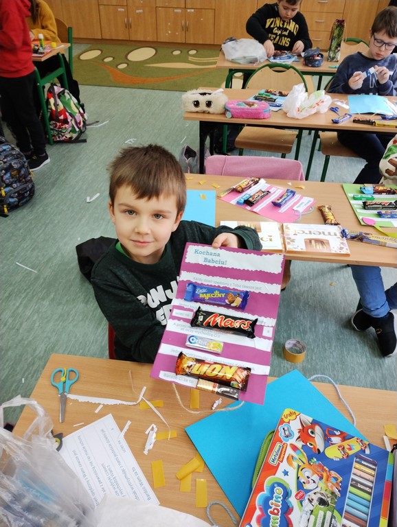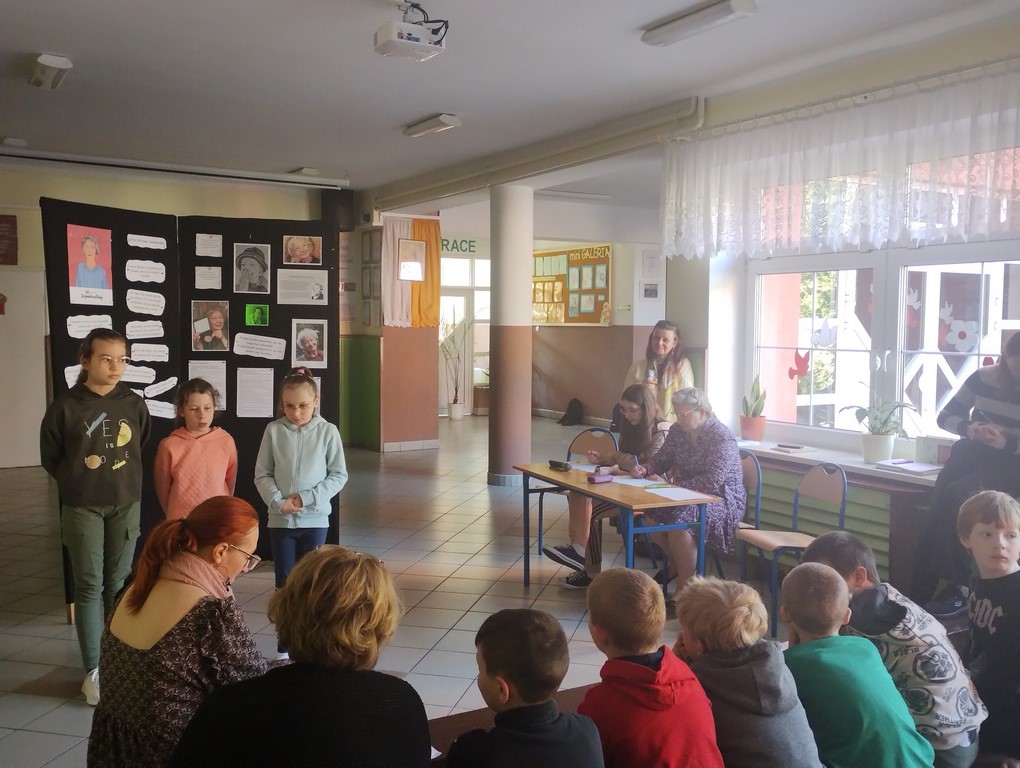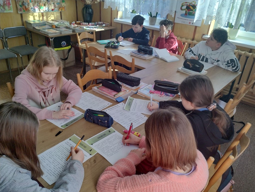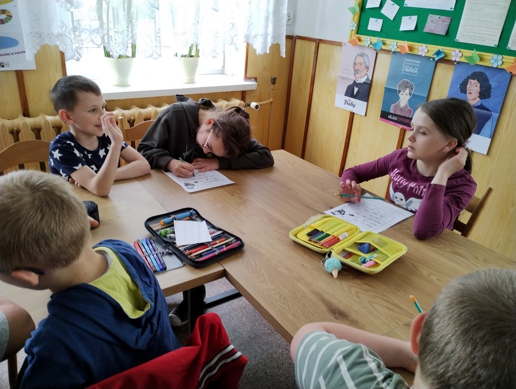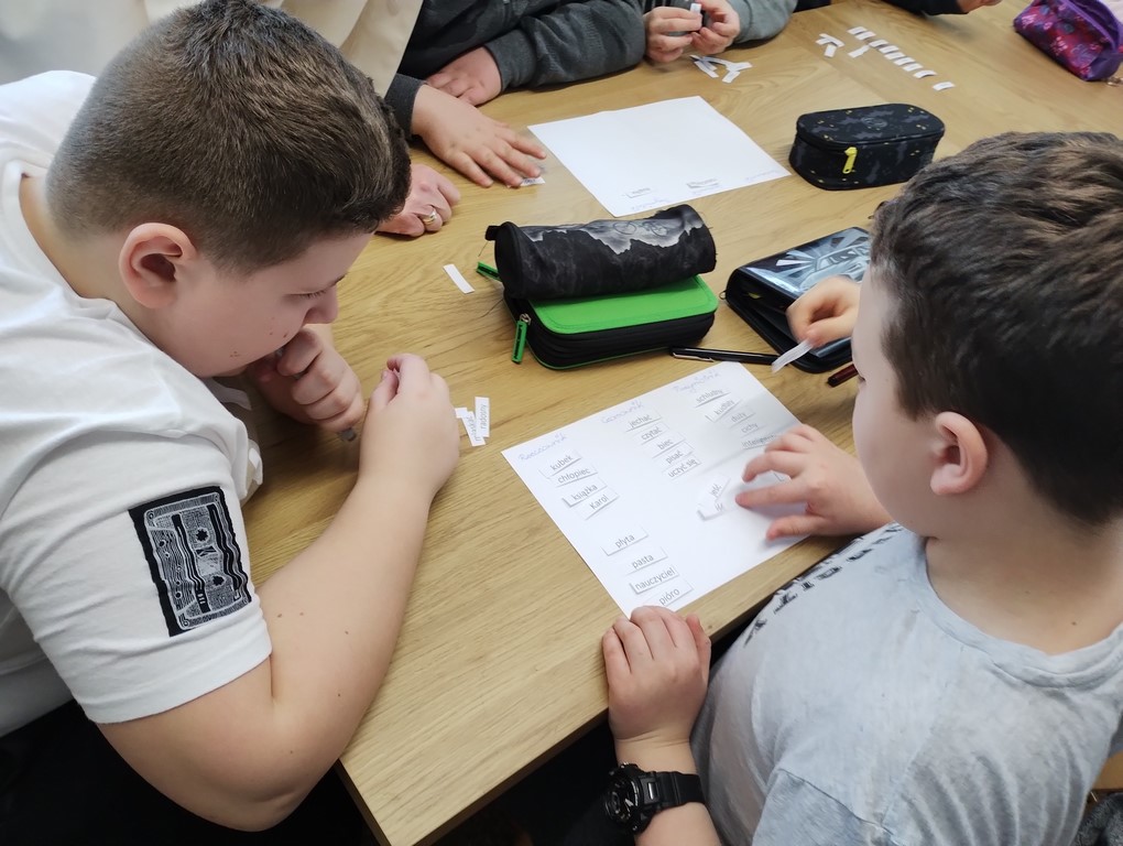 W ramach obchodów Międzynarodowego Dnia Języka Ojczystego biblioteka, jak co roku przygotowała dla uczniów klas I-III gry i zabawy językowe ( takie jak np. duble ortograficzne, rozkodywanie wyrazów, łączenie nazw z odpowiednimi częściami mowy, aktywny alfabet – tworzenie haseł dzięki wykonywaniu określonych czynności, kodowanie – dyktando graficzne, krzesła ortograficzne – zabawy w ortografie i łamńce językowe ). Natomiast piątoklasiści spróbowali swoich sił w zabawach językowych ze słowem Fajny. Uczniowie mieli okazję przekonać się, jak bardzo pojemne jest słowo Fajny. Na koniec każdy uczeń otrzymał tekst, w którym słowo Fajny musiał zamienić na stosowny wyraz bliskoznaczny.