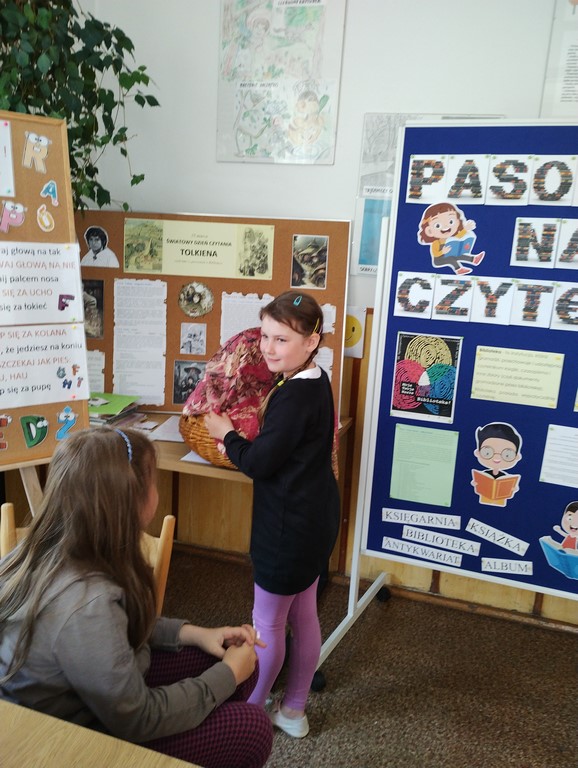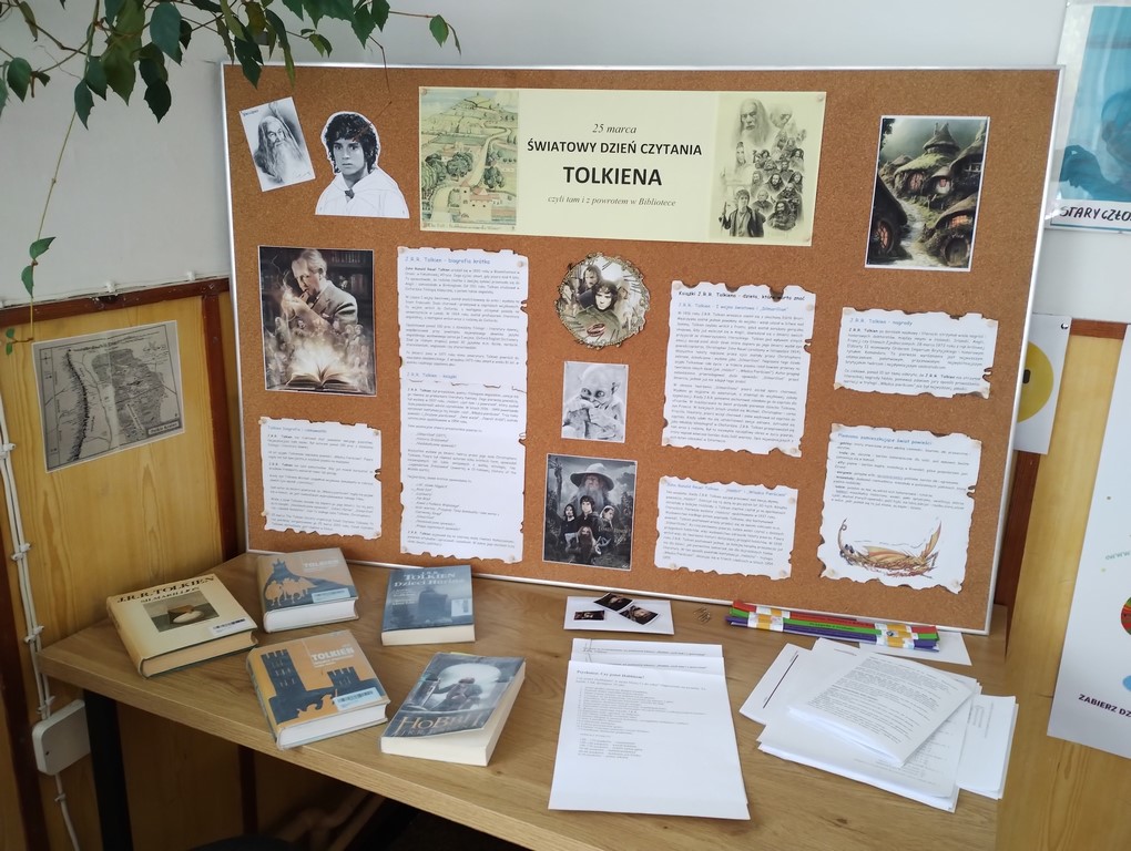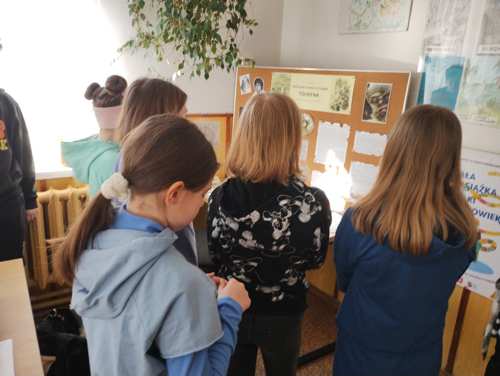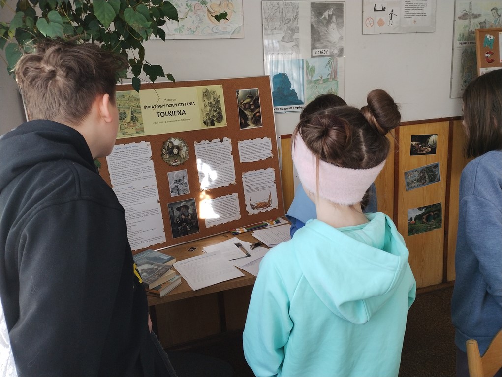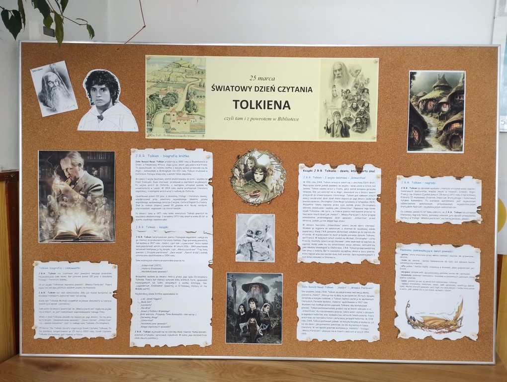 Do tej wyjątkowej akcji promującej czytelnictwo włączyła się również Biblioteka w Białobrzegach poprzez wspólne czytanie „Hobbita” z uczniami klasy V i VI. W ten sposób chcieliśmy zainteresować młodzież „fantastycznymi” przygodami tolkienowskich bohaterów. Czytanie wybranych fragmentów książki „Hobbit, czyli tam i z powrotem” przeplatane było zadaniami, zagadkami i łamigłówkami takimi jak np. odszyfrowywanie zakodowanych wiadomości, ułożenie planu wydarzeń we właściwej kolejności, podanie nazw mieszkańców Szerokiego Świata, którzy swoim postępowaniem przyczynili się do pokonania zła… itd. Duże zainteresowanie uczniów wzbudziła również wystawka poświęcona twórczości J. R. R. Tolkiena z ekspozycją jego książek. Mam nadzieję, że przygotowane ciekawostki dodatkowo zachęcą Was do sięgnięcia po jego utwory.