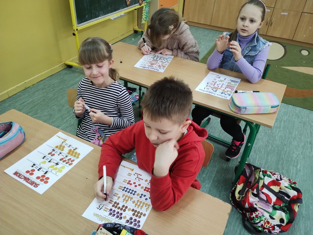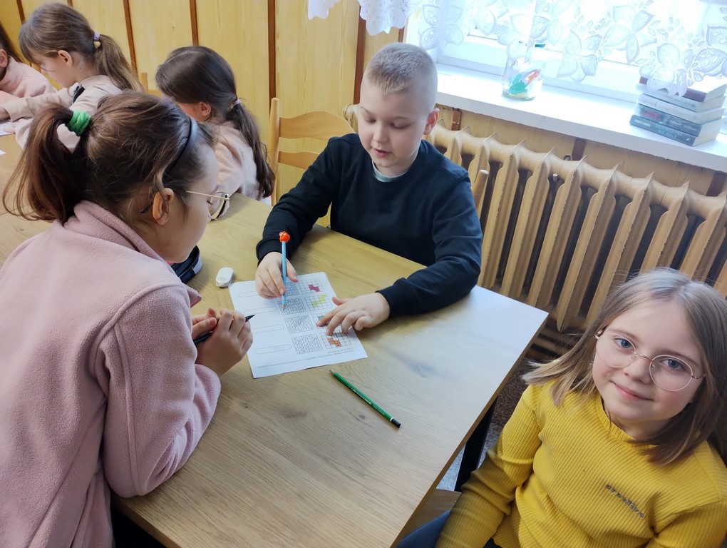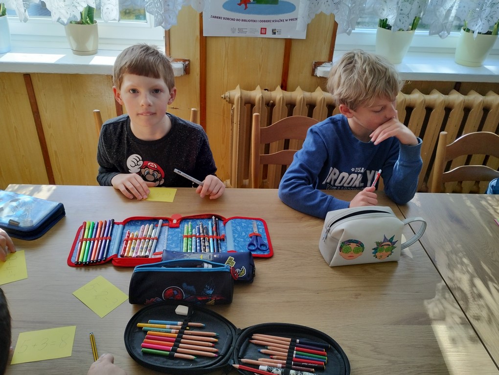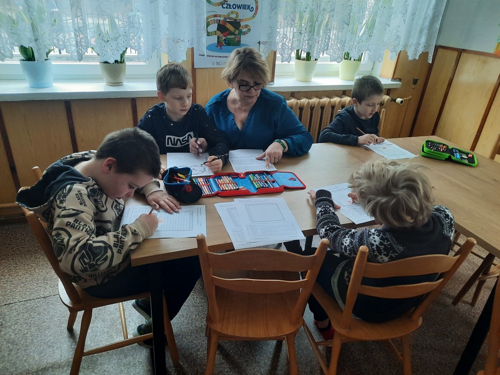 Z tej okazji biblioteka przygotowała dla uczniów klas I-III Szkoły Podstawowej w Białobrzegach matematyczne gry i zabawy, podczas których dzieci mogły sprawdzić swoje umiejętności matematyczne - utrwalali dodawanie, odejmowanie, tabliczkę mnożenia i logiczne myślenie, jak również integrowali się we wspólnym działaniu.