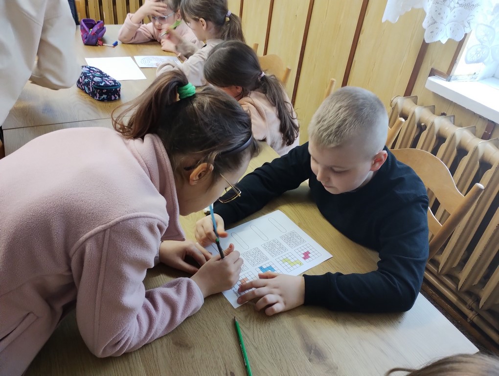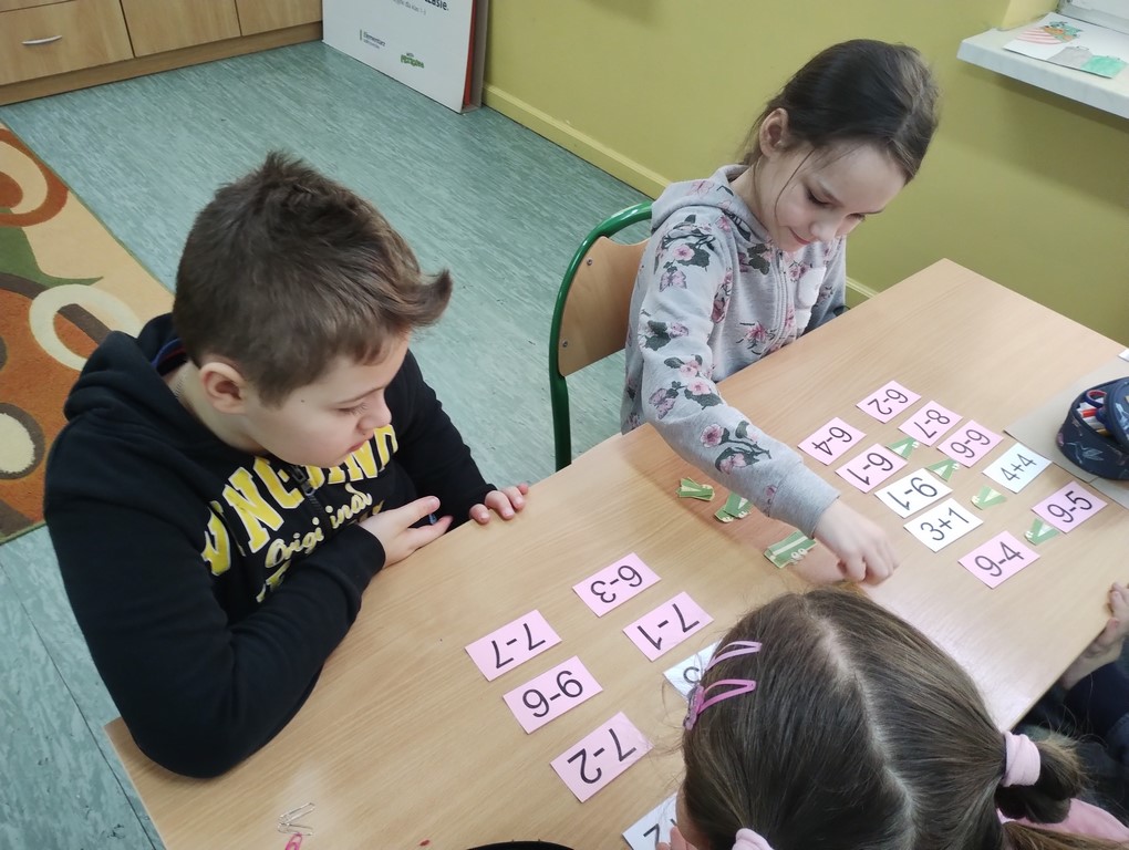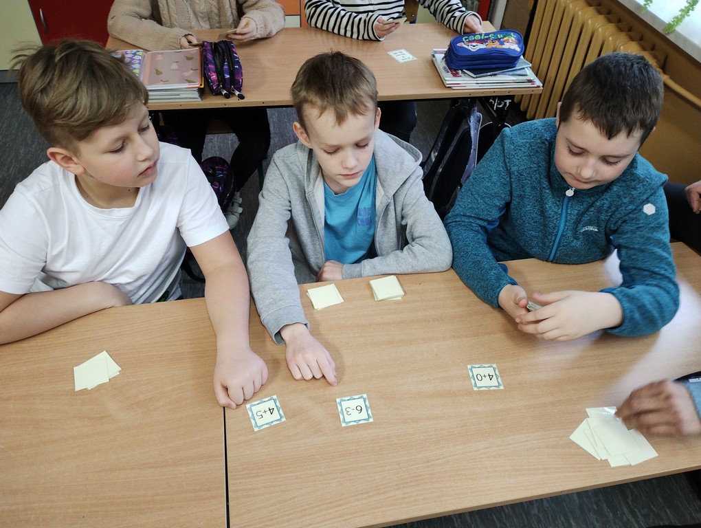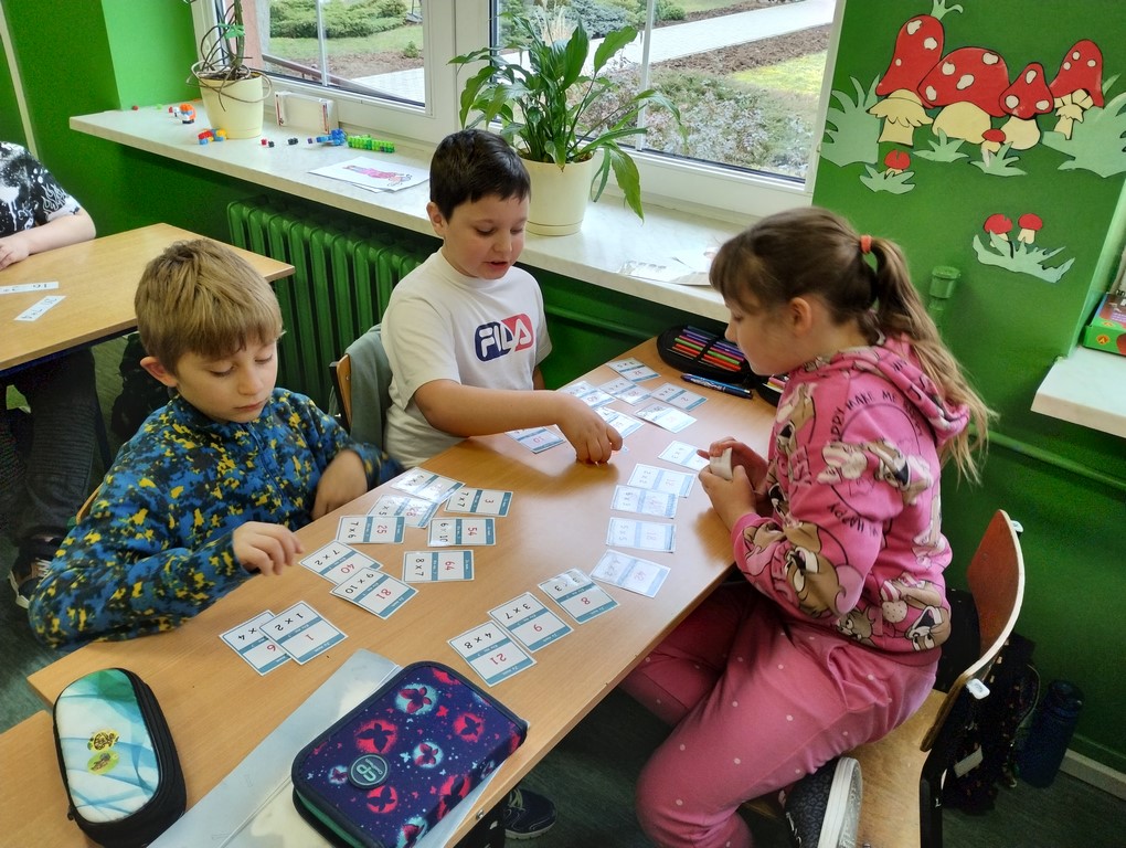 Z tej okazji biblioteka przygotowała dla uczniów klas I-III Szkoły Podstawowej w Białobrzegach matematyczne gry i zabawy, podczas których dzieci mogły sprawdzić swoje umiejętności matematyczne - utrwalali dodawanie, odejmowanie, tabliczkę mnożenia i logiczne myślenie, jak również integrowali się we wspólnym działaniu.