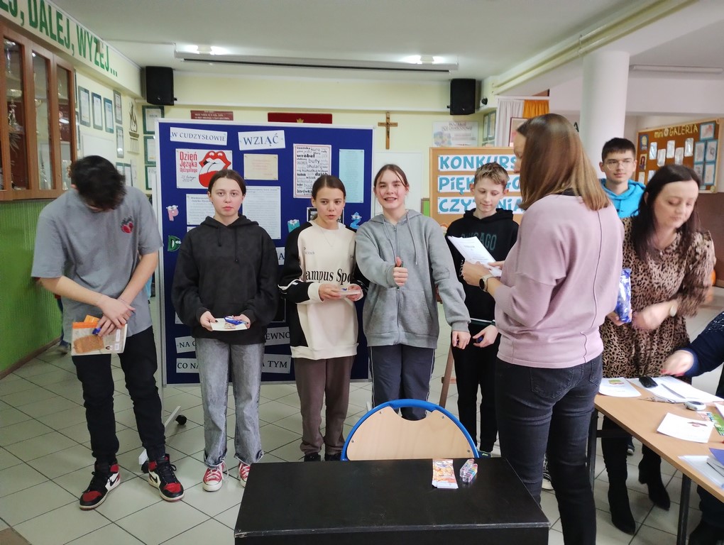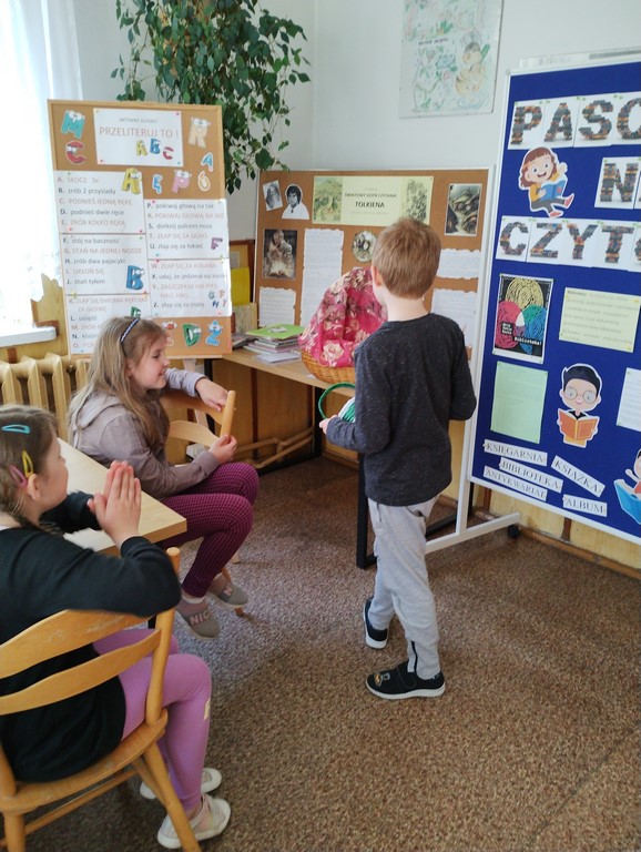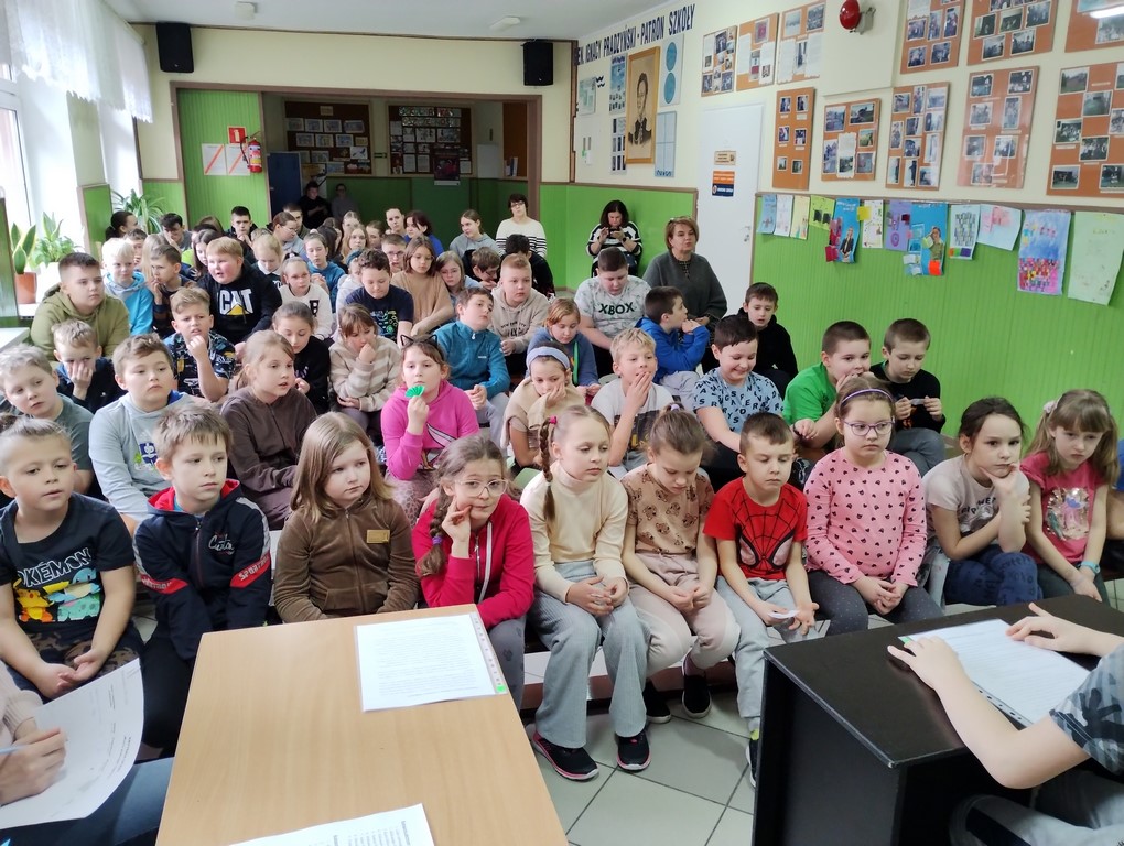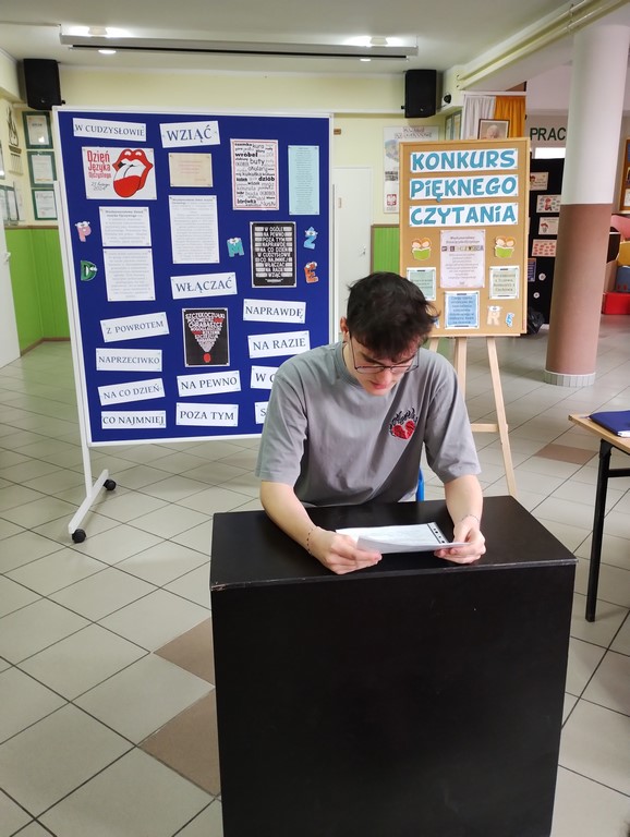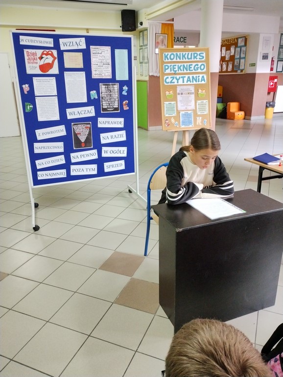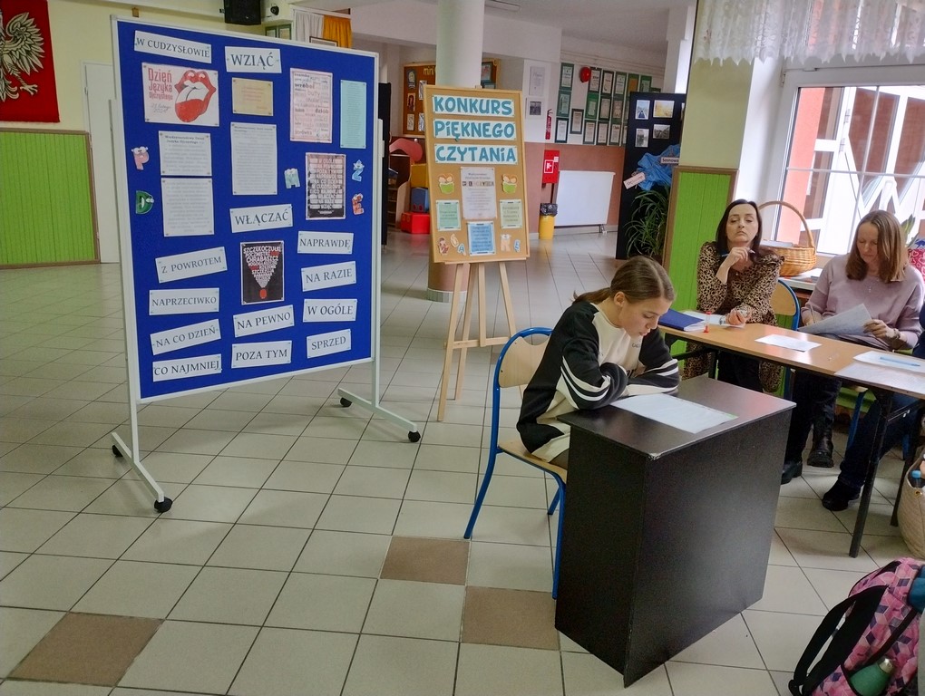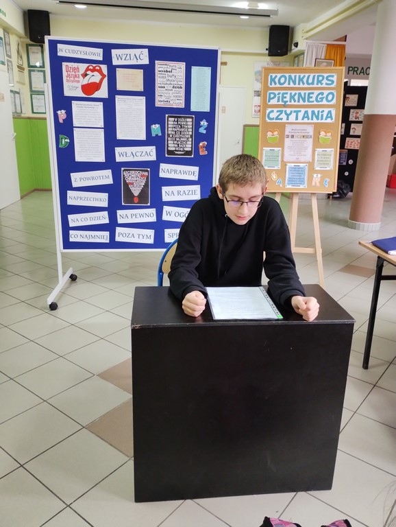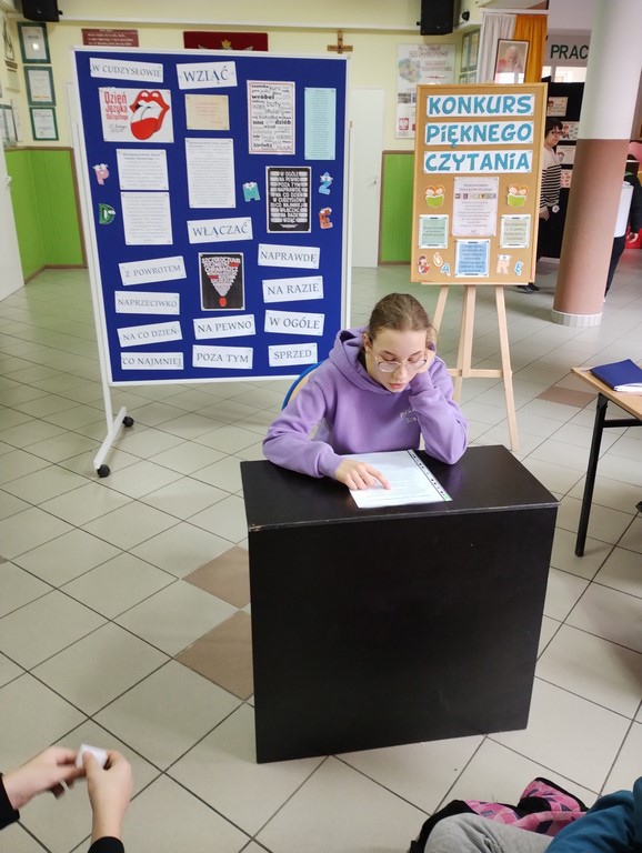 22 lutego w ramach obchodów Międzynarodowego Dnia Języka Ojczystego, biblioteka wspólnie z panią Grażyną Borawską, nauczycielem języka polskiego przygotowała konkurs „Mistrz Pięknego Czytania”. Głównym celem konkursu było przede wszystkim rozbudzenie pasji czytania, kształtowanie umiejętności pięknego czytania oraz popularyzacja książek i czytelnictwa wśród dzieci i młodzieży. Konkurs odbył się w trzech kategoriach wiekowych: klasy I-III, klasy IV-V i klasy VI-VIII. Uczestnicy czytali losowo wybrany fragment książki przygotowany przez organizatorów - adekwatny do wieku uczestników. Z uwagą i przyjemnością wysłuchaliśmy m.in. fragmentów powieści ,,Cukierku, Ty łobuzie!” Waldemara Cichonia, „Nasza mama czarodziejka” Joanny Papuzińskiej, „Rany Julek! O tym, jak Julian Tuwim został poetą” Agnieszki Frączak, ,,Opowieści z Narnii. Lew, czarownica i stara szafa” Clive'a Staplesa Lewisa, ,,Mikołajka” Rene Goscinny'ego i Jeana Jacquesa Sempe, ,,Felix, Net i Nika oraz Gang Niewidzialnych Ludzi” Rafała Kosika, „Igrzyska śmierci” Suzanne Collins i „Pozłacaną rybkę” Barbary Kosmowskiej.