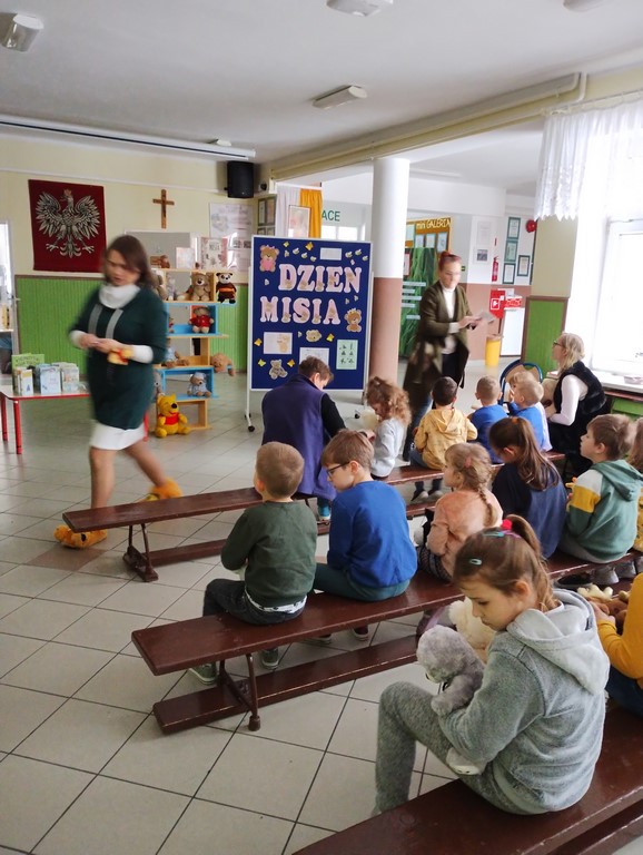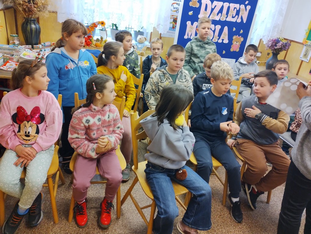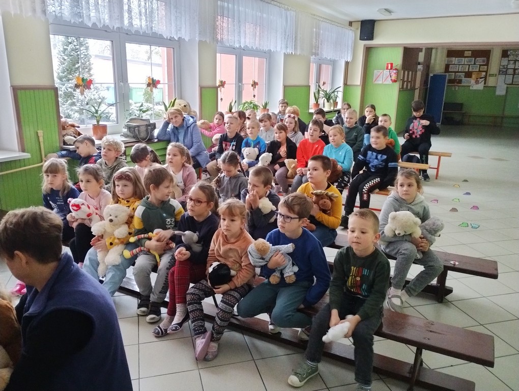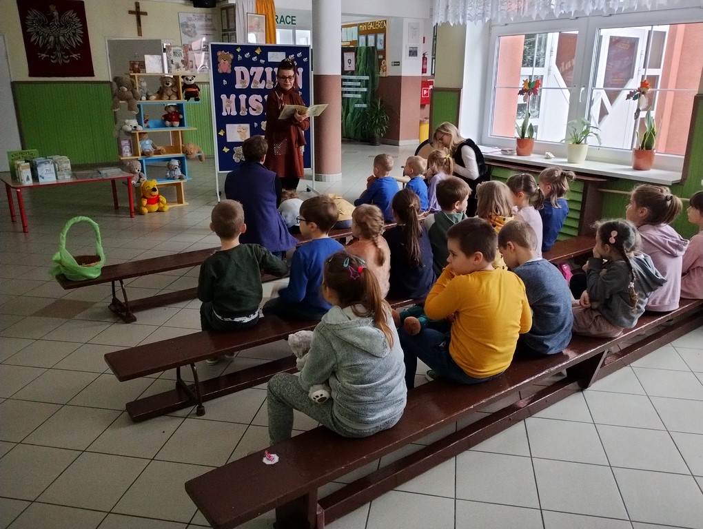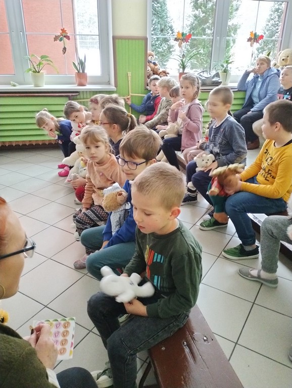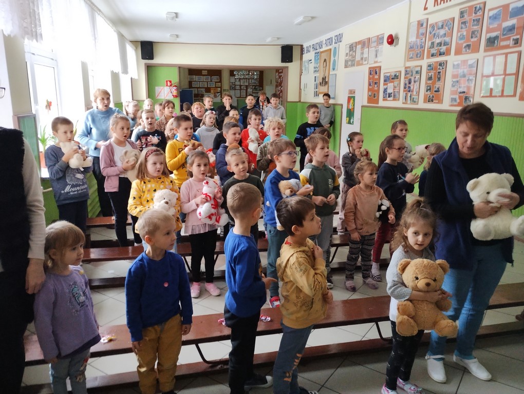W dniu 25 listopada, biblioteka jak co roku wspólnie z przedszkolakami i uczniami klas 1-3 obchodziła Dzień Pluszowego Misia. Tradycyjnie tego dnia każde dziecko przyszło do szkoły ze swoim ulubionym pluszakiem. Przybyły misie małe, duże, bardzo duże, białe, różowe, zielone wprost bajecznie kolorowe, a każdy był piękny i wyjątkowy.