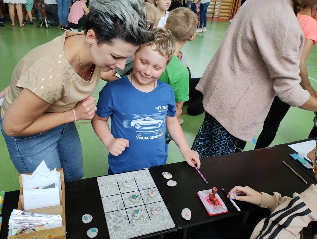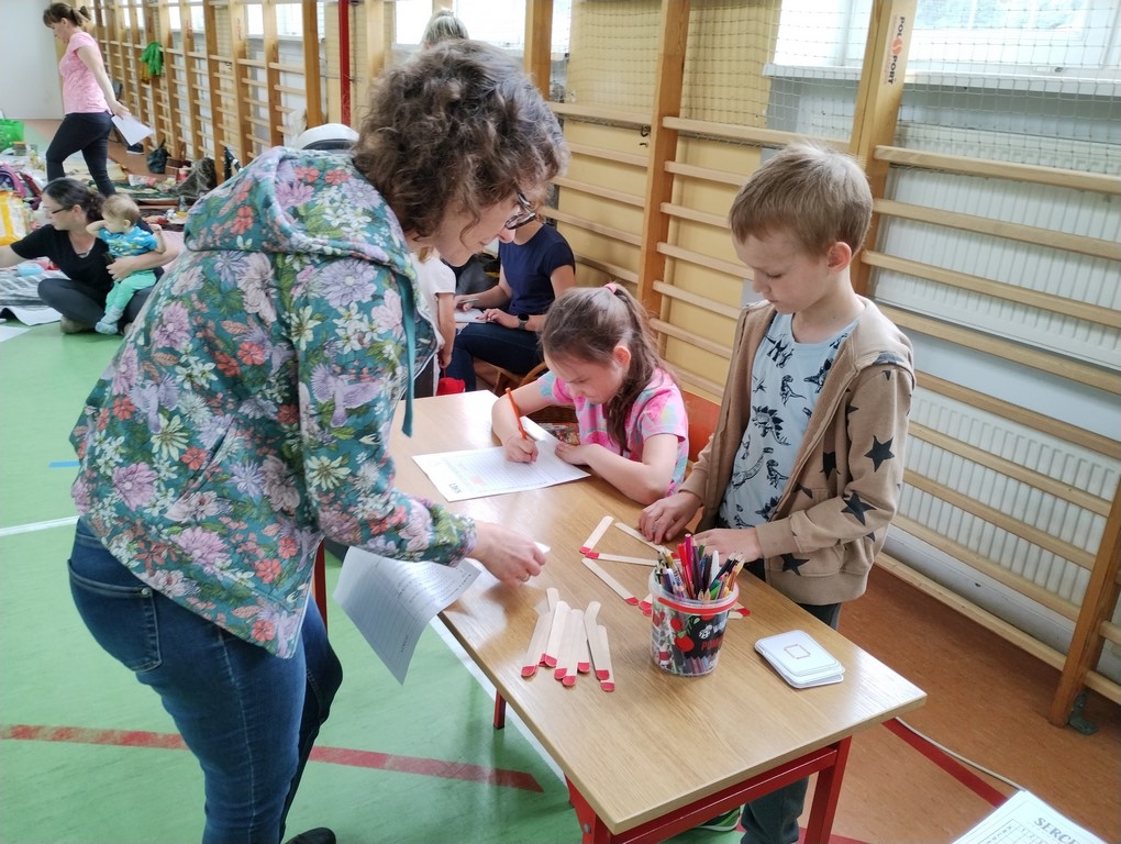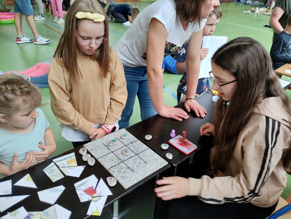Na stoisku przygotowanym przez bibliotekę znajdowały się m.in.: gry i zabawy towarzyskie, puzzle, patyczkowe układanki, aktywny alfabecik oraz kącik czytelniczy.