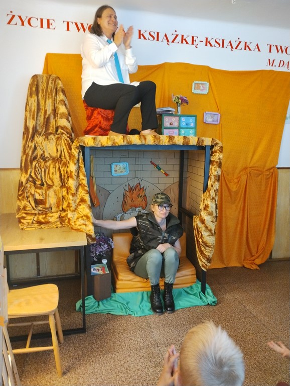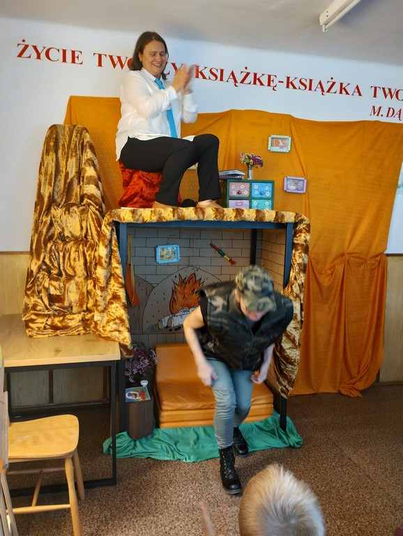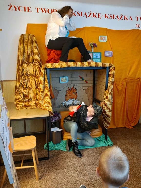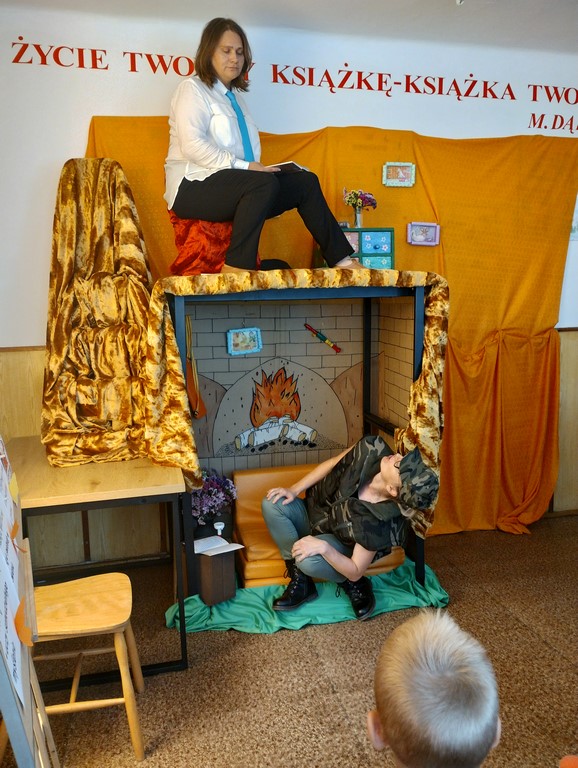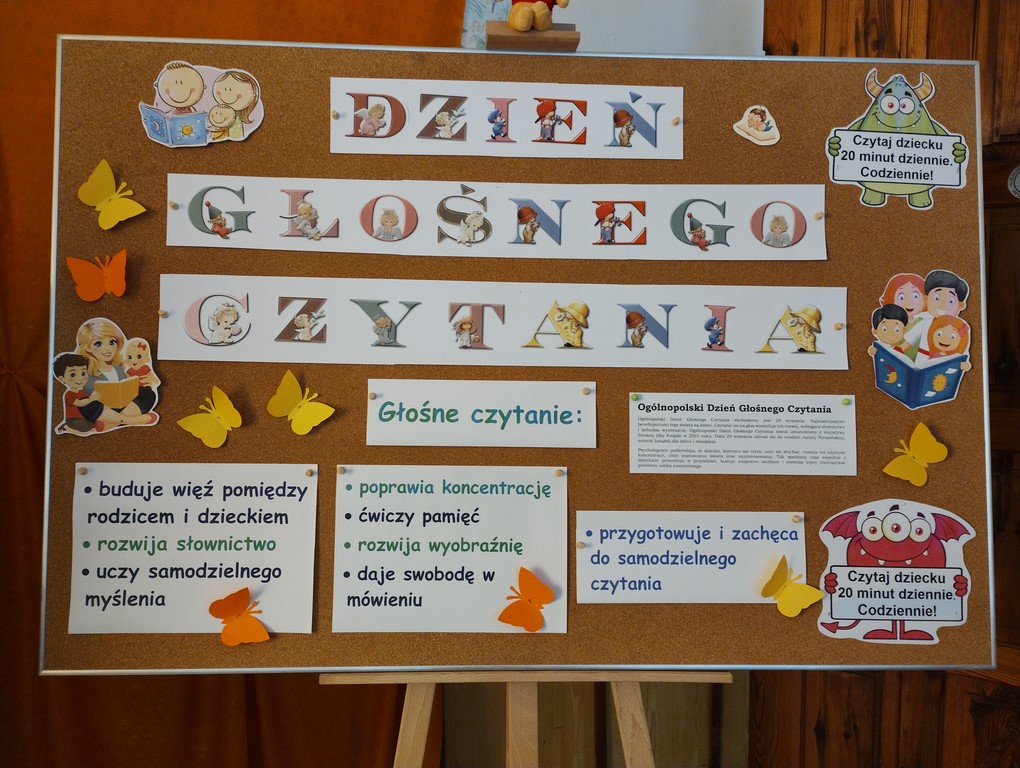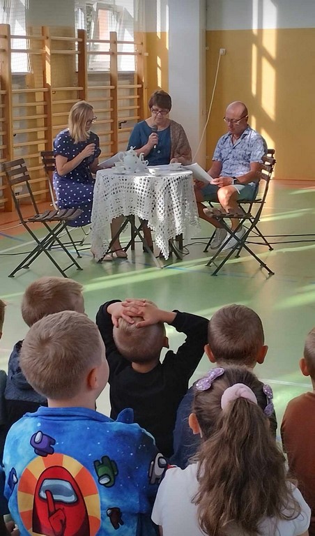 29 września obchodzimy Ogólnopolski Dzień Głośnego Czytania. Idea wydarzenia ma na celu propagowanie głośnego czytania dzieciom. Czytanie im na głos stymuluje ich rozwój, wzbogaca słownictwo i pobudza wyobraźnię. Tego dnia w Bibliotece odbyło się głośne czytanie dla przedszkolaków. Dzieci poznały historię o Pawle i Gawle, którzy mieszkali w tym samym domu. Jeden z nich na górze, a drugi na dole. Paweł był cichy i spokojny, zaś Gaweł niesforny i hałaśliwy. Wybór repertuaru nie był przypadkowy, bowiem 2023 r. jest Rokiem Aleksandra Fredry, wybitnego komediopisarza, znanego także z bajek takich jak „Małpa w kąpieli”, „Osiołkowi w żłoby dano” oraz wspomnianej wcześniej - „Paweł i Gaweł”. W inscenizacji wzięły udział: narrator - Julia Giedrojć z kl. IV; Paweł – pani Ewa (bibliotekarka) i Gaweł - pani Ula (nauczycielka zerówki).
