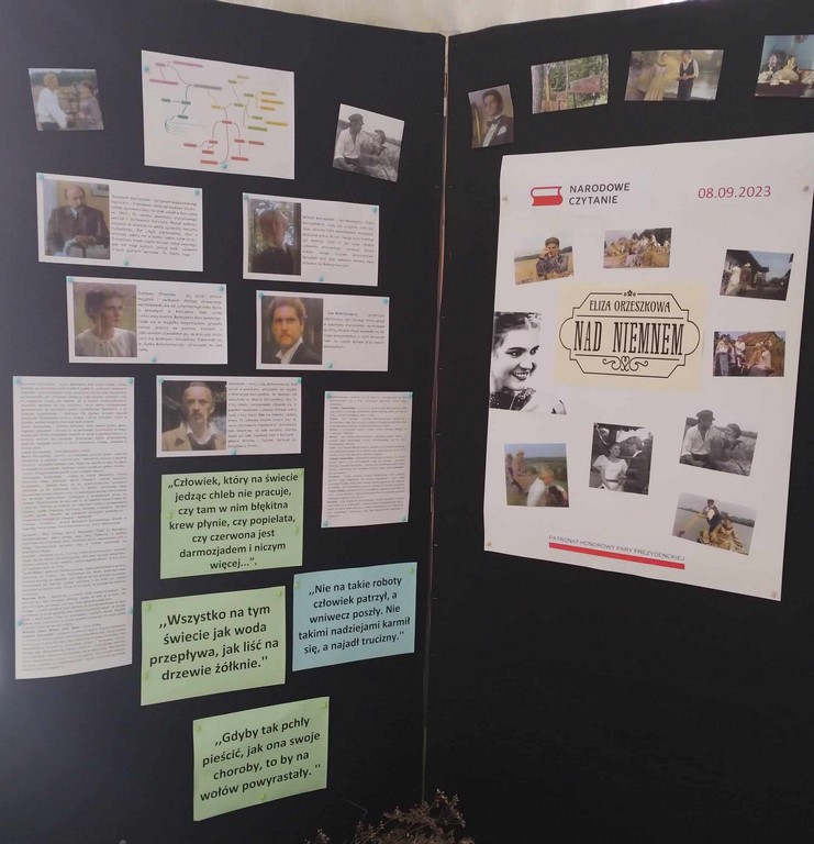 8 września biblioteka wspólnie ze Szkołą Podstawową w Białobrzegach po raz kolejny wzięła udział w Narodowym Czytaniu, społecznej akcji czytelniczej zainicjowanej przez Parę Prezydencką RP przed dwunastu laty. Z ubiegłorocznej krainy romantycznej przenieśliśmy się do niezwykłego świata powieści "Nad Niemnem" Elizy Orzeszkowej. Publiczności przedstawiliśmy dialogi: "Ciotka Marta i Justyna", "Sąsiedzka kłótnia", "Odwiedziny", "Mogiła", "Ojciec i syn", "Matka i syn". Zaprezentowali je i przenieśli nas w nadniemeńską krainę Korczyńskich i Bohatyrowiczów: Katarzyna Korąkiewicz, Urszula Sokołowska – Sipczak, Artur Kuryło, Tomasz Tomaszewski (sekretarz gminy Augustów), Aniela Nowik, Paulina Krysztofik, Szymon Walijewski, Halina Suchodolska, Jan Saczko. Puentą piątkowego spotkania z powieścią Elizy Orzeszkowej była prezentacja pana Józefa, który przedstawił uczniom niezwykłe narzędzia pracy dawnych rolników i opowiedział o: sierpie, kosie, drewnianych grabiach i cepie. To była pożyteczna lekcja ojczystej literatury i historii oraz folkloru. Dziękujemy wszystkim, którzy aktywnie włączyli się w akcję Narodowego Czytania i zapraszamy do wspólnego czytania w 2024 roku dramatu "Kordian" Juliusza Słowackiego.