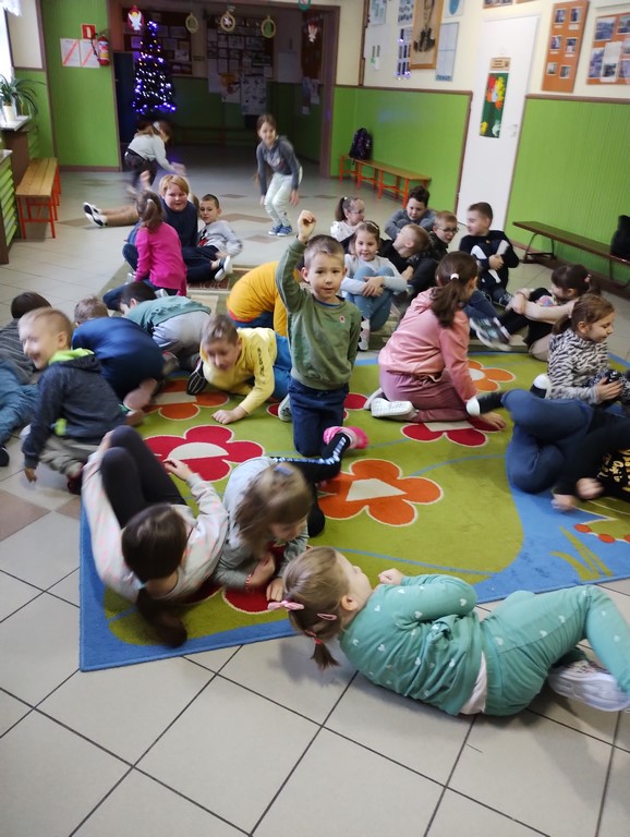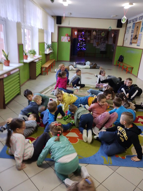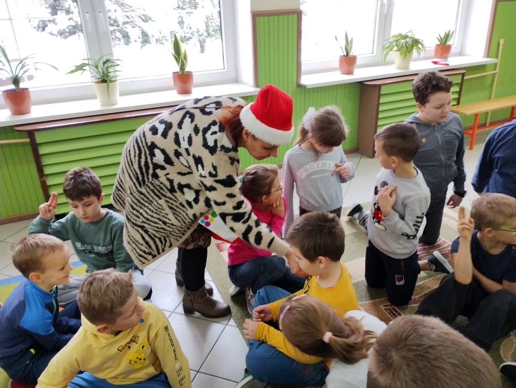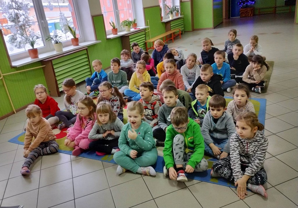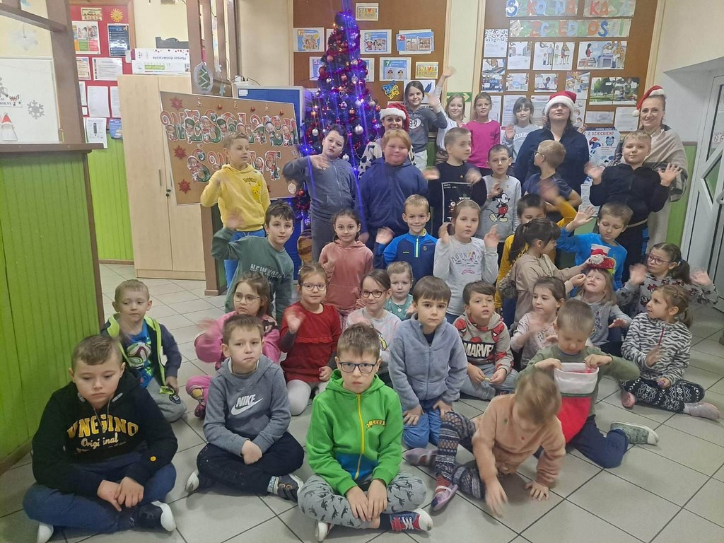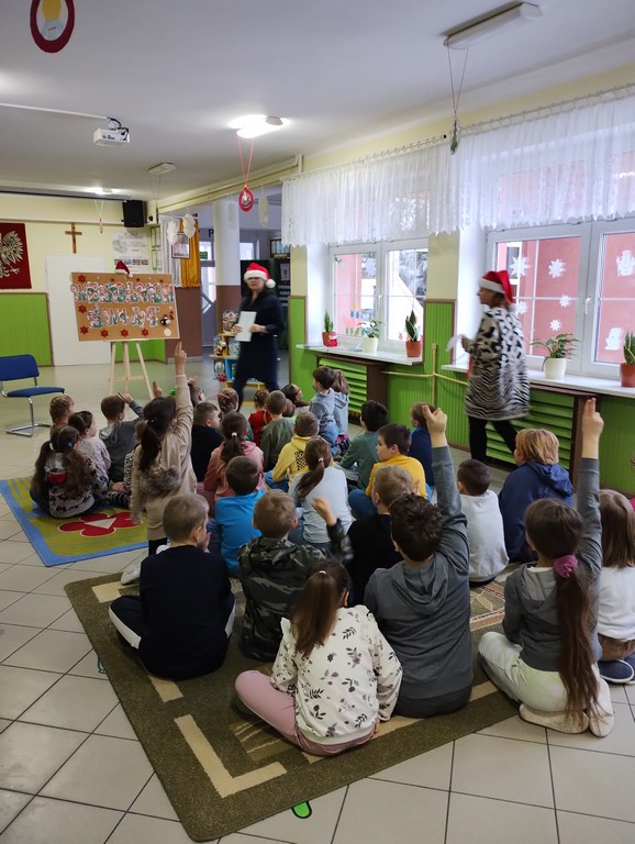 Zbliżające się Święta Bożego Narodzenia były okazją do spotkania się z najmłodszymi czytelnikami. Po krótkiej rozmowie wprowadzającej w tematykę spotkania, dzieci wysłuchały świątecznej opowiastki bożonarodzeniowej, opowiadającej historię małych saneczek, które chciały stać się wielkimi Czerwonymi Saniami Świętego Mikołaja. Dzieci z ciekawością wysłuchały, a potem odpowiadały na pytania dotyczące przeczytanej książki. Były również świąteczne zagadki, quizy i wspólne śpiewanie kolęd. Nie zabrakło oczywiście zabawy ruchowej ( świąteczne karty ruchowe ). Wszystkim udzieliła się świąteczna atmosfera, a całe spotkanie zakończyło się zdjęciem przy choince i przepięknymi świątecznymi piosenkami. Serdecznie dziękuję dzieciom i nauczycielom za udział w spotkaniu.