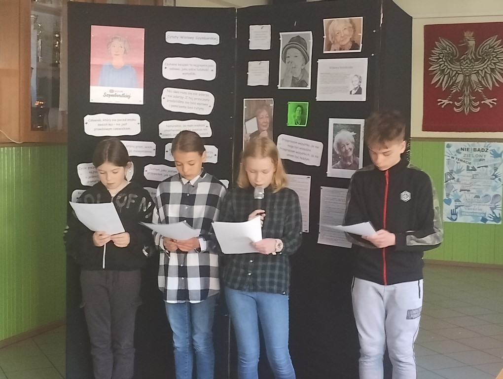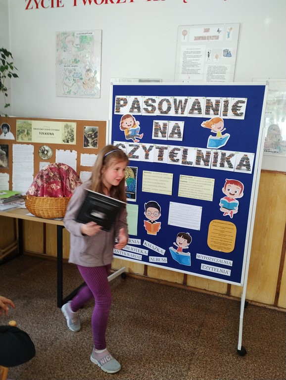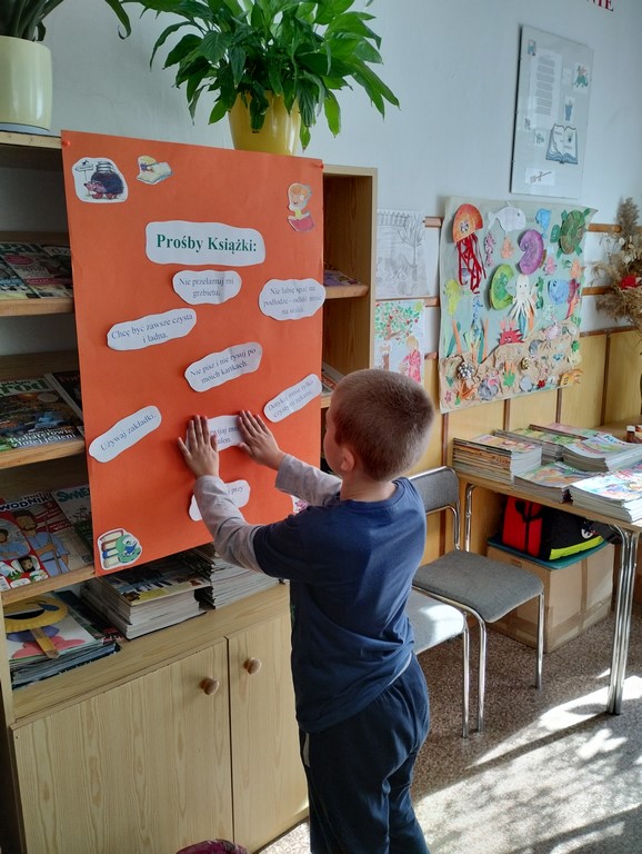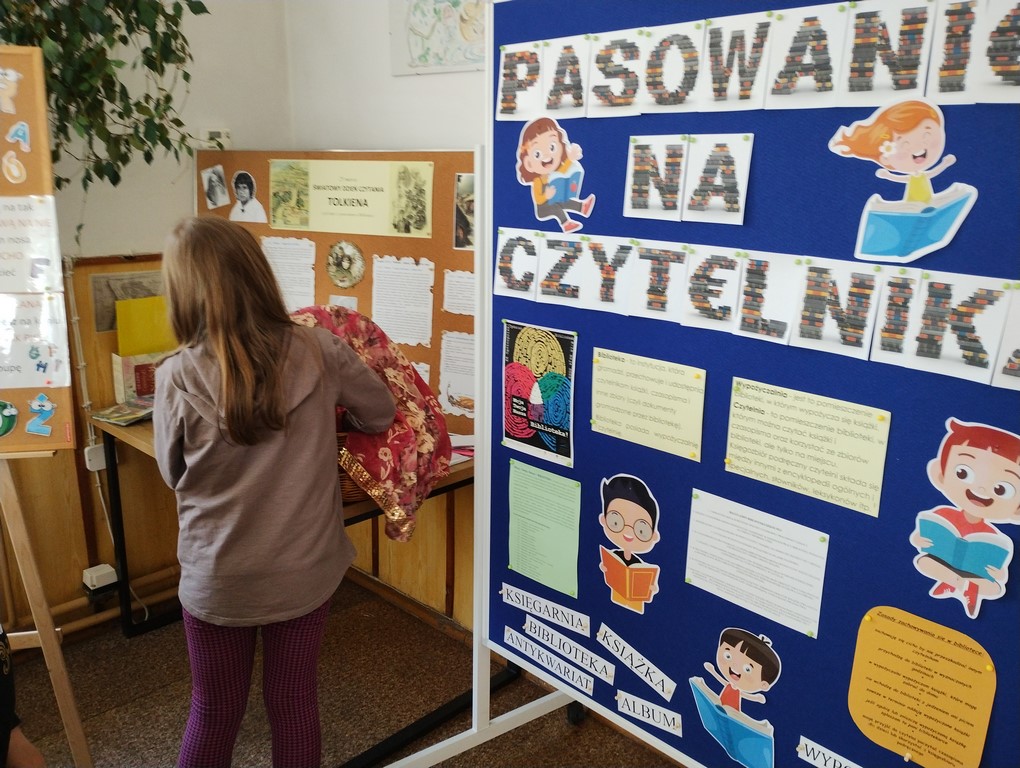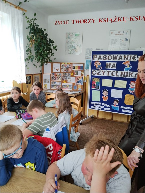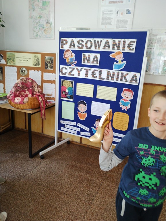 Światowy Dzień Książki i Praw Autorskich ustanowiony przez UNESCO, obchodzony jest 23 kwietnia. Tego dnia 1616 roku odeszli dwaj wielcy pisarze – William Szekspir (,,Hamlet”, ,,Romeo i Julia”) i Miguel de Cervantes (,,Don Kichot”). Dlatego warto przypomnieć znane fragmenty ich dzieł: scenę balkonową z ,,Romea i Julii” oraz przygodę z wiatrakami rycerza don Kichota. W piątek w zaciszu naszej biblioteki uczniowie klasy 4, 7, 8 rozmawiali o swoich ulubionych książkach. Kaja, Weronika, Mateusz, Małgorzata (klasa 4), Aniela i Klaudia (klasa 7), Julia, Natalia, Klara, Maja (klasa 8) ciekawie i z pasją opowiedzieli o przeczytanych książkach i ułożyli Piramidę Czytelnika, złożoną z naszych ulubionych utworów. Interesujące prezentacje uczniów przypomniały słowa Carlosa Ruiza Zafona z ,,Cienia wiatru”: ,,Każda znajdująca się tu książka, każdy tom, posiadają własną duszę. […] Każda, którą tu widzisz była czyimś najlepszym przyjacielem.” Teraz jest naszym. W tym dniu bibliotekę również odwiedzili najmłodsi czytelnicy, gdzie wspólnie na podstawie kolorowych plansz ustaliliśmy pewne zasady obchodzenia się z książka. Dzieci wykonały także piękne portrety czytelnika, zakładki do książek i wzięły udział w zabawach ruchowych. W nagrodę otrzymały pamiątkowe dyplomy.