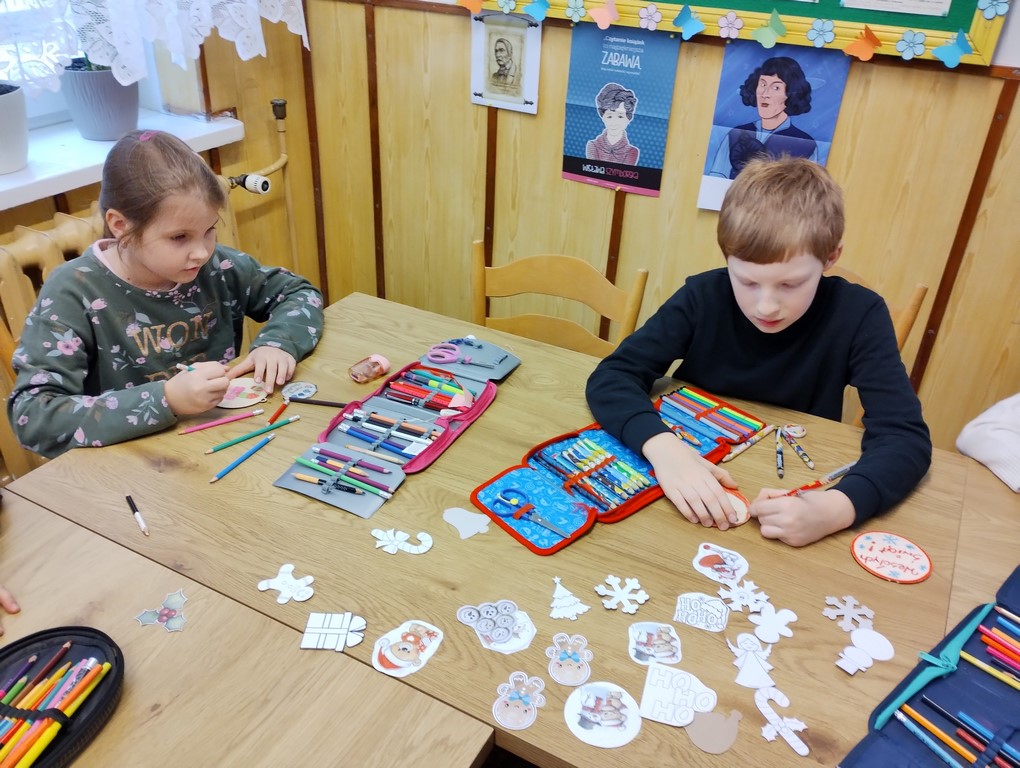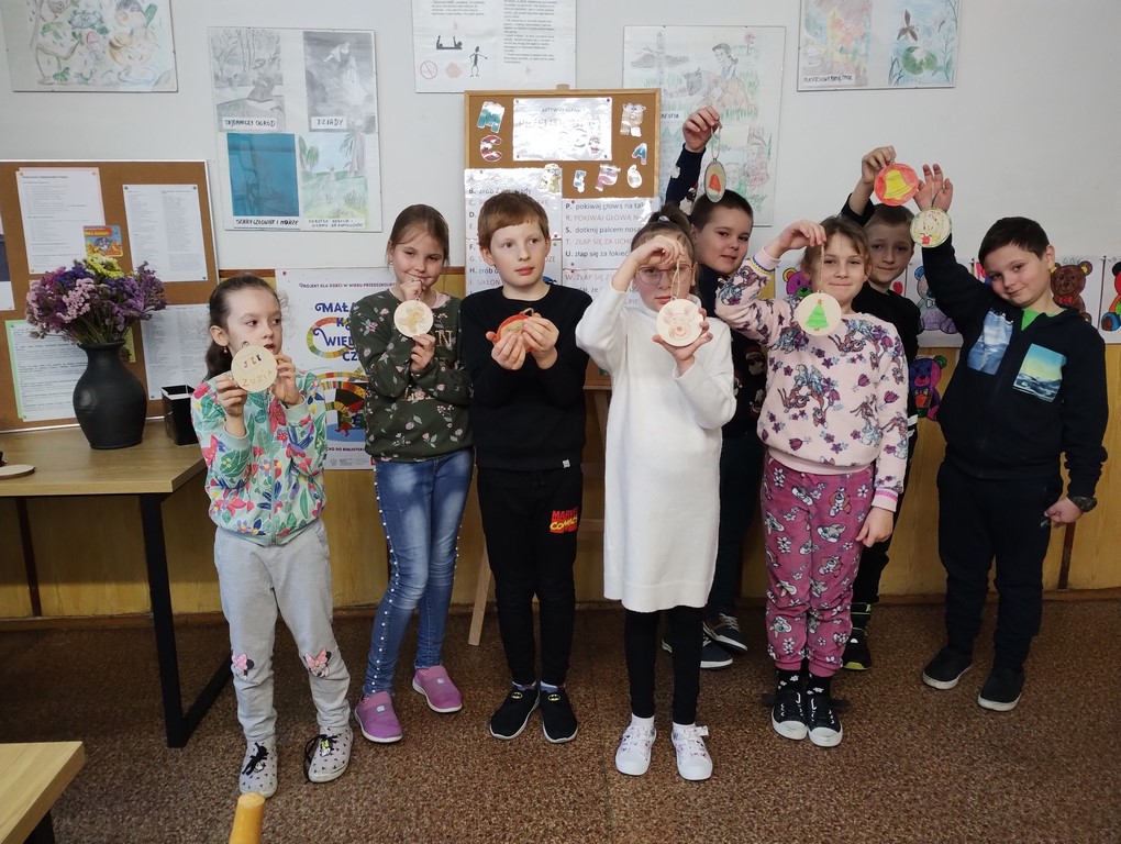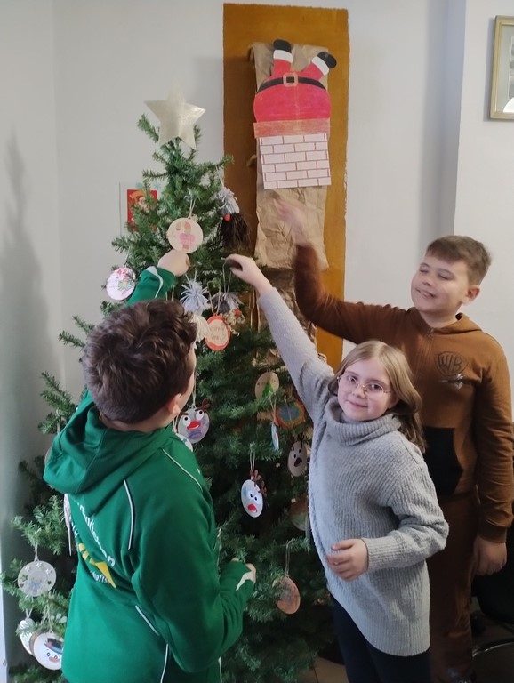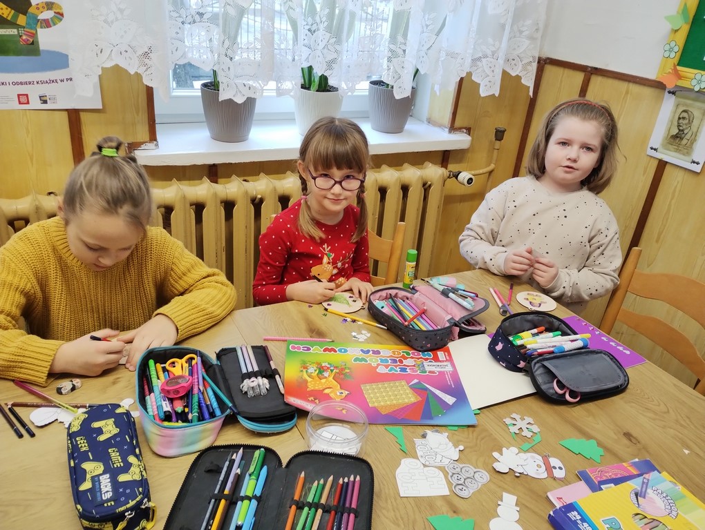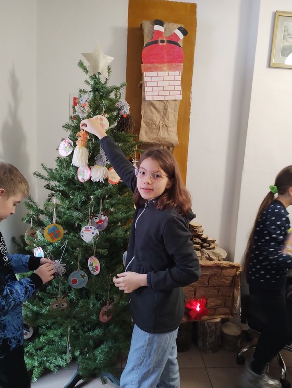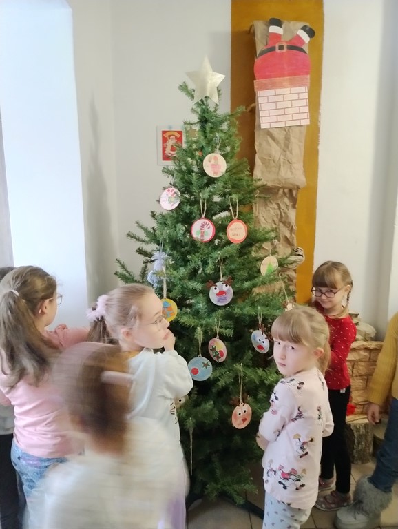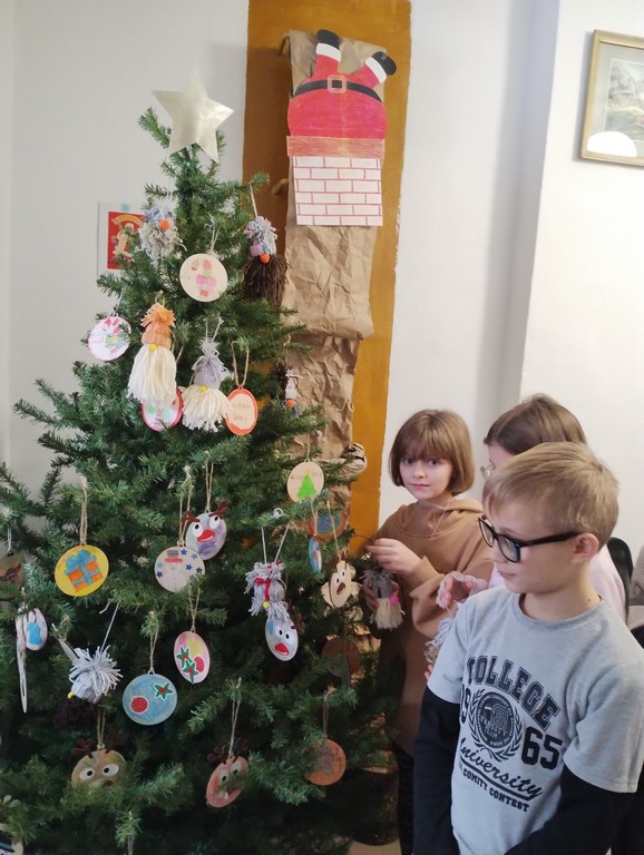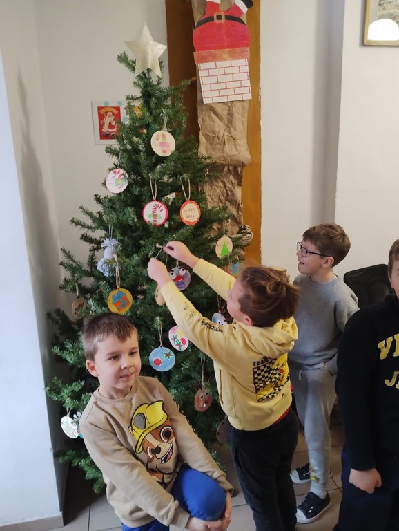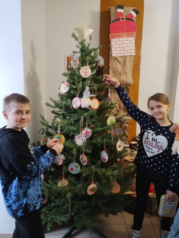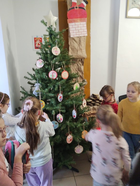 W tym roku, również i na korytarzu biblioteki stanęła świąteczna choinka, na której najmłodsi czytelnicy i uczniowie z klas 1-4 Szkoły Podstawowej w Białobrzegach, z wielkim zaangażowaniem zawieszali własnoręcznie ozdobione bombki oraz inne ozdoby choinkowe, wykonane na zajęciach bibliotecznych. Wspólne dekorowanie choinki dostarczyło dzieciom wiele radości i wprowadziło w świąteczny nastrój.